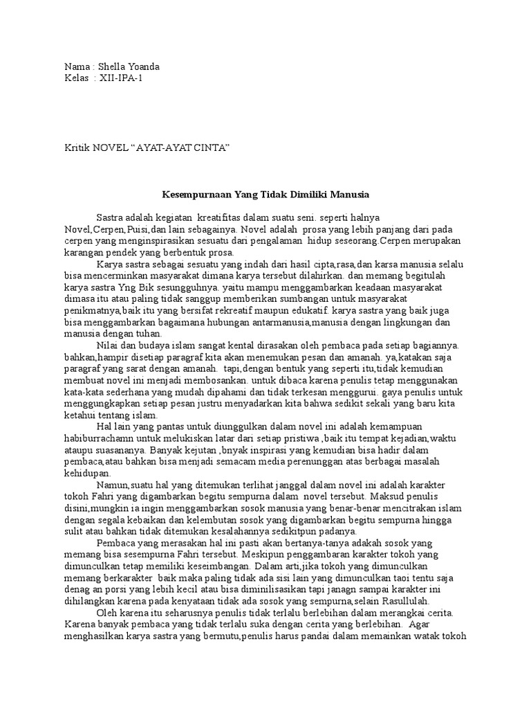 Feb 01, 2021 · novel yang akan saya kritik di sini yaitu novel yang berjudul laskar pelangi karya andrea hirata. Jul 18, 2021 · contoh esai novel laskar pelangi contoh press. 1.walupun terdapat beberapa kritik yang tidak mendukung novel ini,menurut saya novel ini mempunyai tema yang bagus, memuat tentang pendidikan.selain itu novel ini dapat membangkitkan kita agar tidak mudah putus asa jika ingin meraih mimpi. Mengajarkan kita agar baik terhadap teman sesama dan mau untuk saling membantu. "karya sastra adalah anak kehidupan kreatif seorang penulis dan mengungkapkan pribadi pengarang" (selden, 1985: